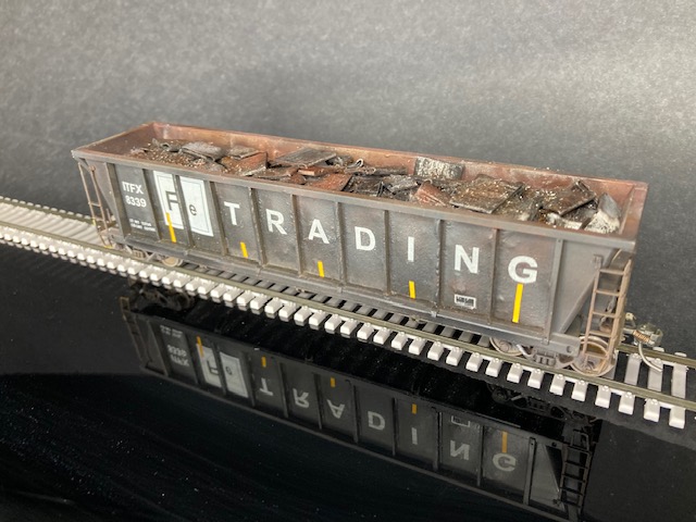 Scale Trains HO scale bulkhead flatcar with pre-stressed concrete bridge bent caps