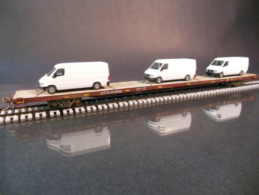 Atlas HO scale bulkhead flatcar with graphite electrodes
