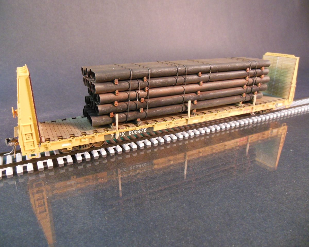 Atlas HO 68’ bulkhead flatcar with windmill rings