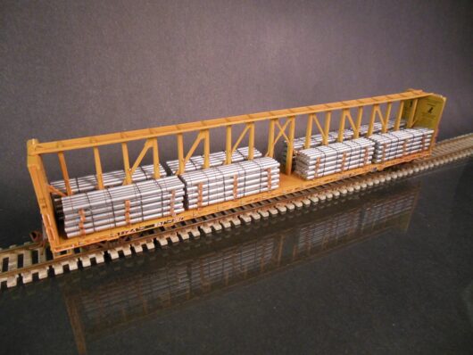 Atlas HO scale bulkhead flatcar with cellular steel beams