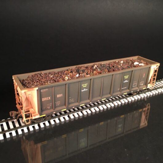 Athearn HO scale steel gondola with construction debris