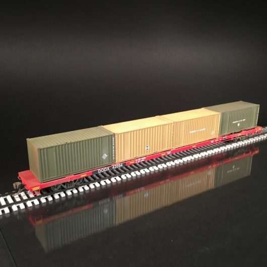 Scale Trains HO scale bulkhead flatcar with pre-stressed concrete bridge bent caps
