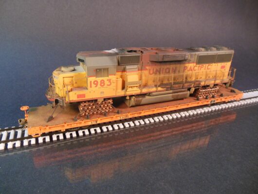 HO Scale Bulkhead Flatcar with Raw Hardwood Ties