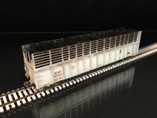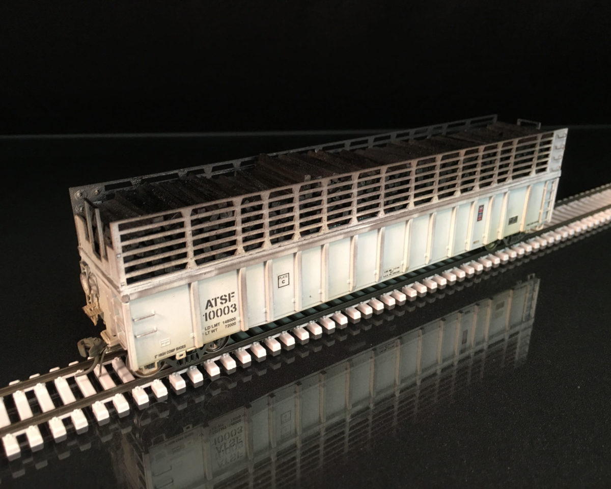 Atlas HO scale bulkhead flatcar with graphite electrodes