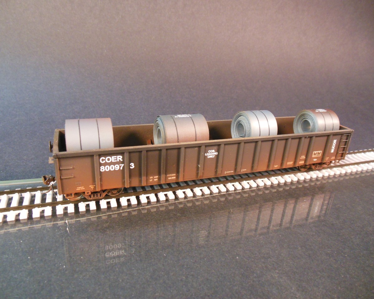 Atlas HO scale bulkhead flatcar with graphite electrodes