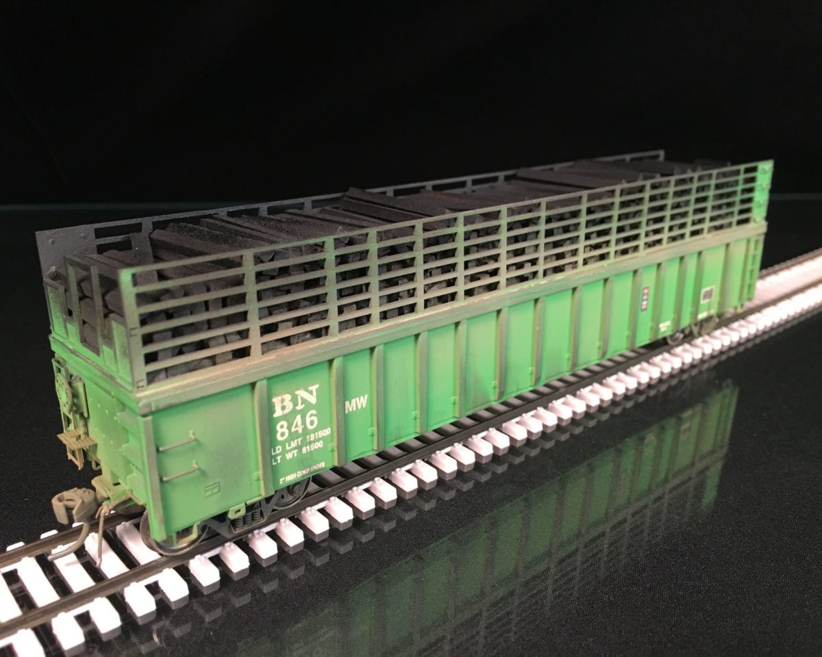 This model features treated Kappler hardwood ties, AEI tags, and Kadee couplers. This model is lightly weathered.