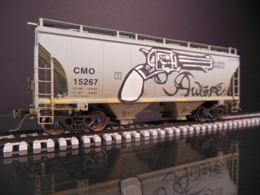 This model features Hi-Tech air hoses, AEI tags, and Kadee couplers. This model is lightly weathered.