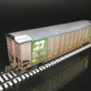 These covers are used on repurposed 50’ aluminum coal gondolas that haul cow feed from Eddyville, Iowa to two locations in Texas. The canvas covers are rolled back prior to being rotary dumped at Dalhart and Bolvina, Texas. These covers fit Atlas, Athearn and Walthers brand of 50' Bethgon gondolas.