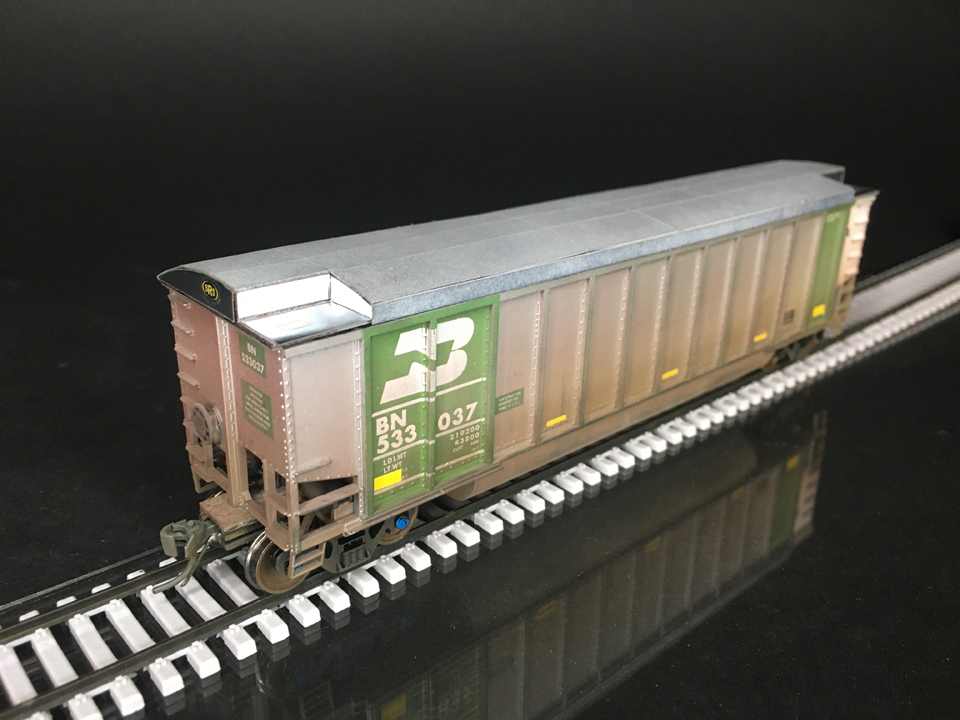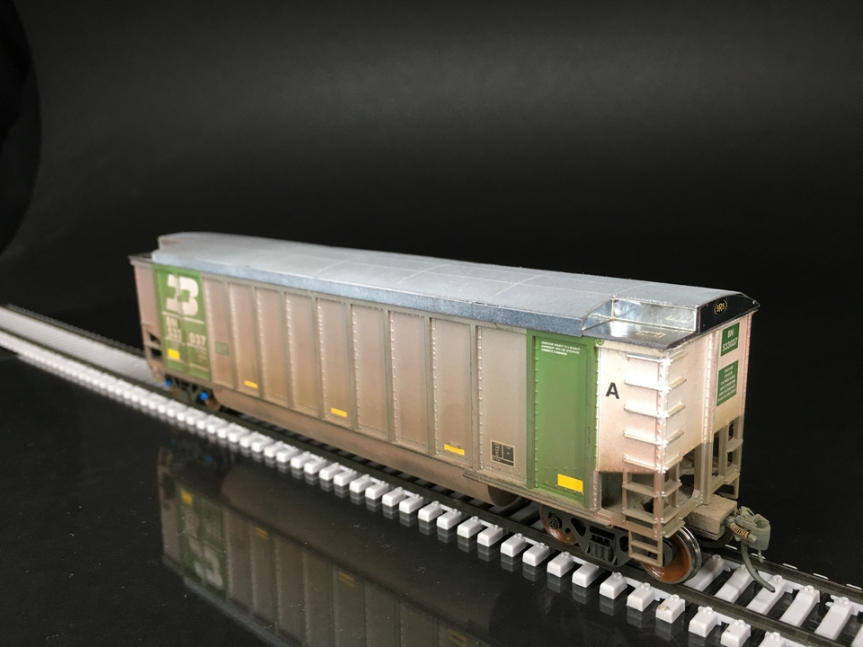 These covers are used on repurposed 50’ aluminum coal gondolas that haul cow feed from Eddyville, Iowa to two locations in Texas. The canvas covers are rolled back prior to being rotary dumped at Dalhart and Bolvina, Texas. These covers fit Atlas, Athearn and Walthers brand of 50' Bethgon gondolas.