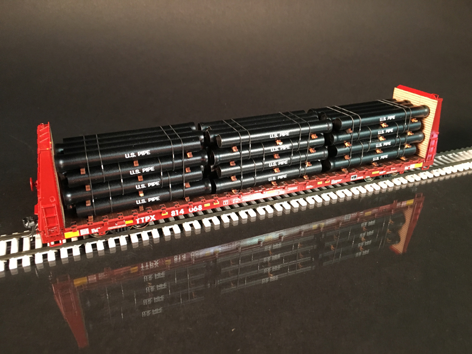 Scale Trains HO scale bulkhead flatcar with pre-stressed concrete bridge bent caps