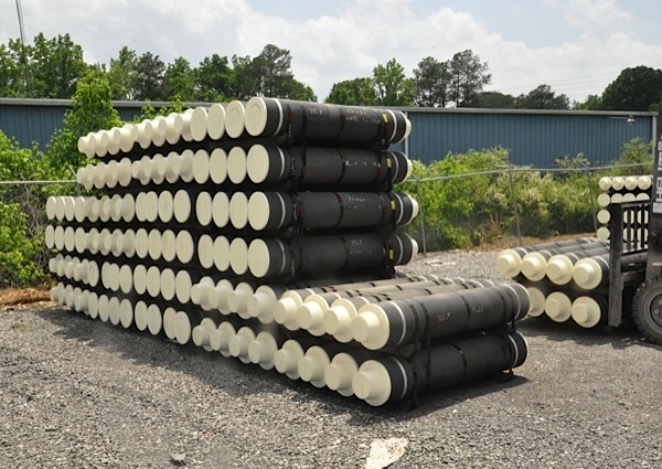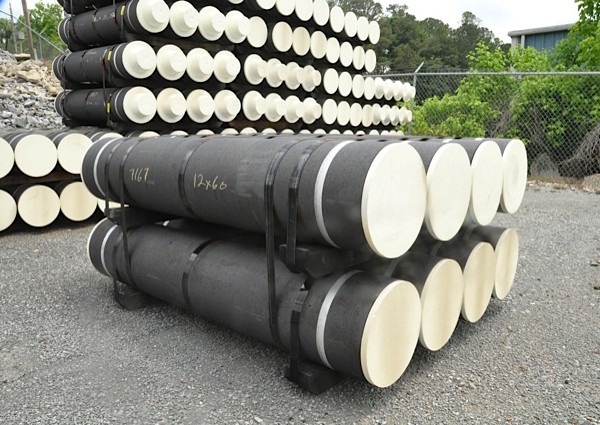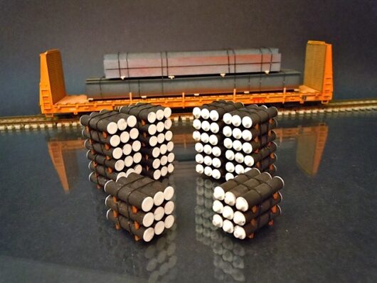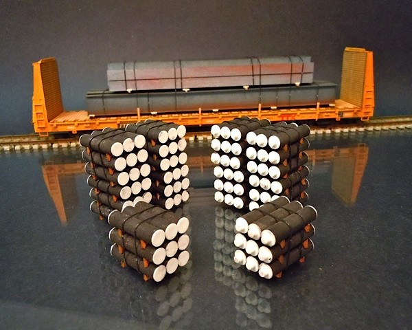 Atlas HO scale bulkhead flatcar with graphite electrodes