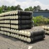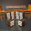 Scale Trains HO scale bulkhead flatcar with pre-stressed concrete bridge bent caps