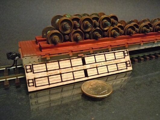 Atlas HO scale bulkhead flatcar with graphite electrodes