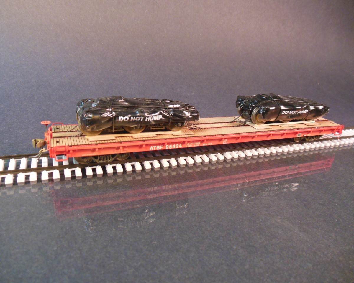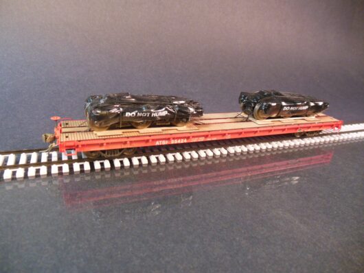 Atlas HO scale bulkhead flatcar with graphite electrodes