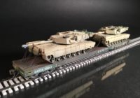 Protoloads built 68’ flatcar with two Abram tanks