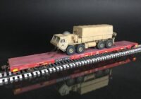 Protoloads built HO scale 68’ flatcar with military transport vehicle
