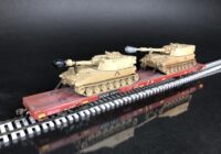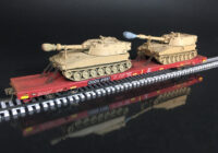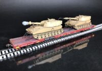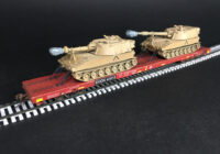 Protoloads HO scale 68’ Department of Defense flatcars with two 27 ton M-109 Howitzers