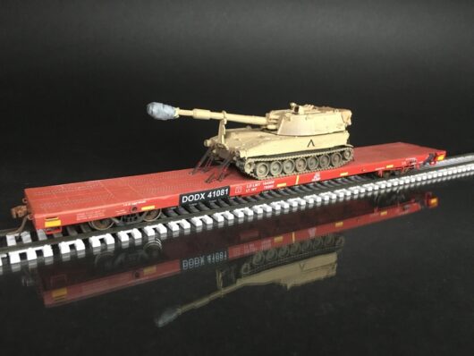 Protoloads HO Scale 68’ Department Of Defense Flatcars With One 27 Ton M-109 Howitzer