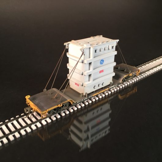 Walthers HO Scale Center Depressed Flatcar With Transformer Load