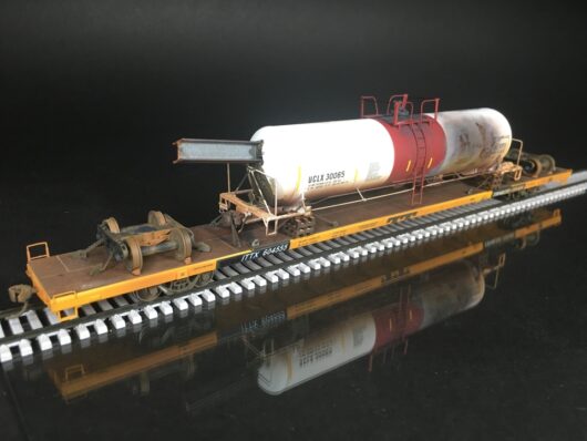 HO Scale Bulkhead Flatcar with Raw Hardwood Ties