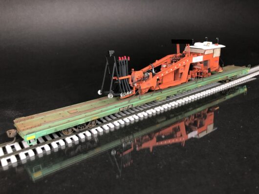 Walthers HO scale 60’ flatcar with John Deere equipment