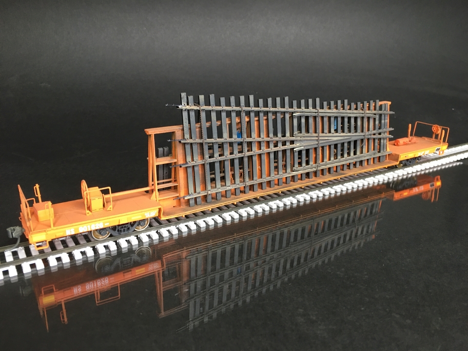 Atlas HO scale bulkhead flatcar with cellular steel beams